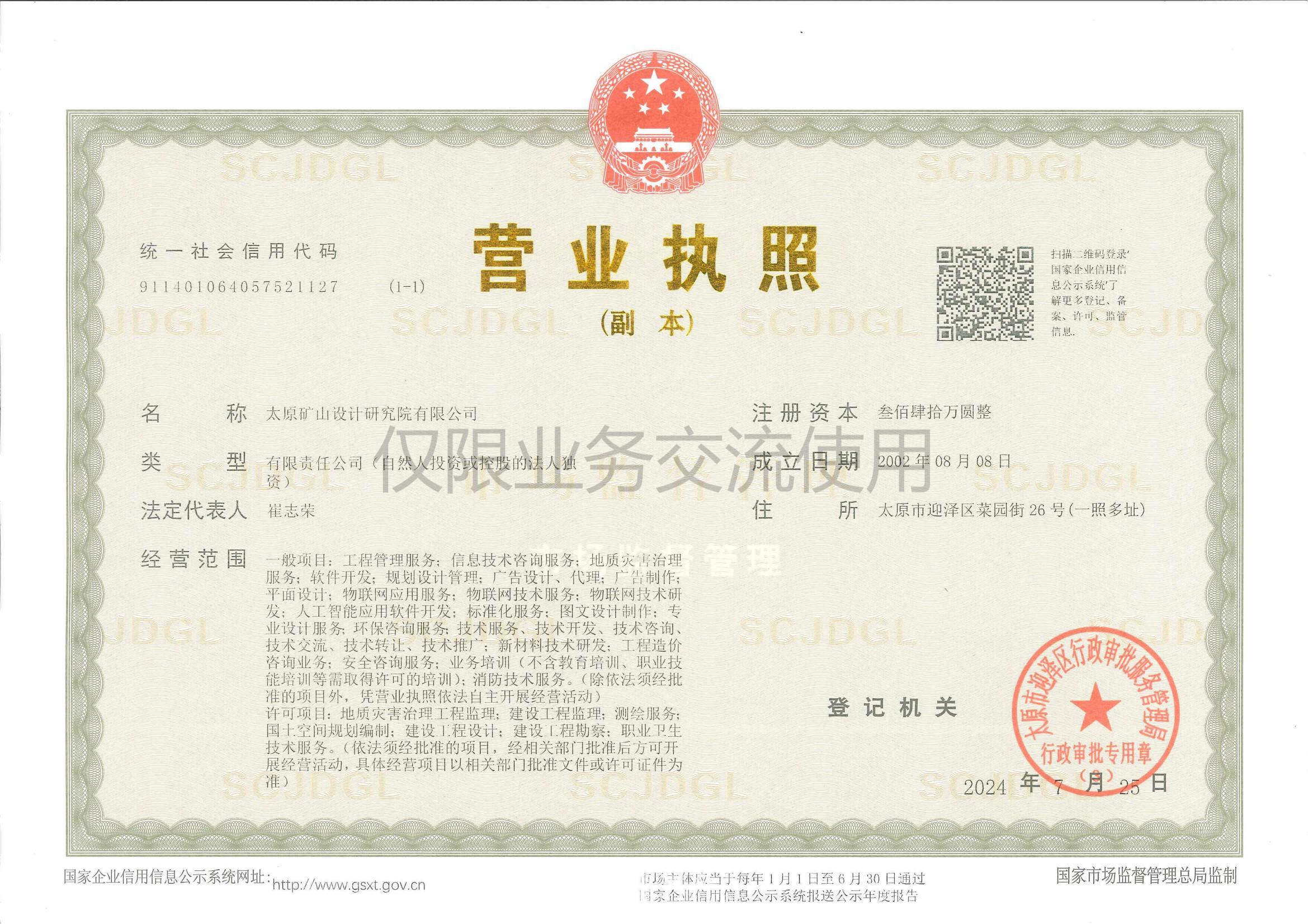 公司主要從事礦山采選尾工程設(shè)計(jì)、智能化及自動(dòng)化礦山、建設(shè)綠色礦山、工程技術(shù)咨詢(xún)、規(guī)劃設(shè)計(jì)管理、施工勞務(wù)分包、土地規(guī)劃、地質(zhì)災(zāi)害治理服務(wù)、安全生產(chǎn)技術(shù)服務(wù)、軟件開(kāi)發(fā)及測(cè)繪服務(wù);煤礦、非煤礦山設(shè)計(jì);煤礦、非煤礦山、危險(xiǎn)化學(xué)品安全評(píng)價(jià)(業(yè)務(wù)范圍:煤炭開(kāi)采業(yè);金屬、非金屬及其他礦采選業(yè);石油加工業(yè),化學(xué)原料、化學(xué)品及醫(yī)藥制造業(yè));非煤礦山、冶金等工商貿(mào)企業(yè)、危險(xiǎn)化學(xué)品從業(yè)單位安全生產(chǎn)標(biāo)準(zhǔn)化評(píng)審;公共場(chǎng)所衛(wèi)生、生活飲用水、公共場(chǎng)所集中中央空調(diào)通風(fēng)系統(tǒng)的檢驗(yàn)、檢測(cè)、評(píng)價(jià);職業(yè)健康檢測(cè)檢驗(yàn);建設(shè)項(xiàng)目職業(yè)病危害評(píng)價(jià)、職業(yè)危害因素檢測(cè)與評(píng)價(jià);安責(zé)險(xiǎn)技術(shù)服務(wù);業(yè)務(wù)培訓(xùn)等工作。